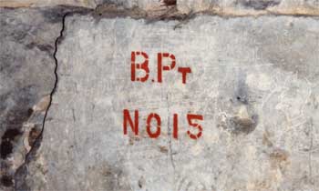 Stenciled lettering marks Number 15 Bucket Point where buckets